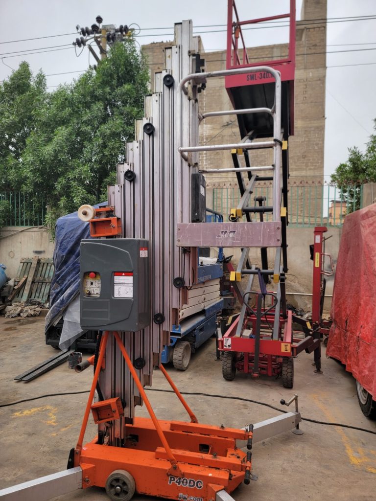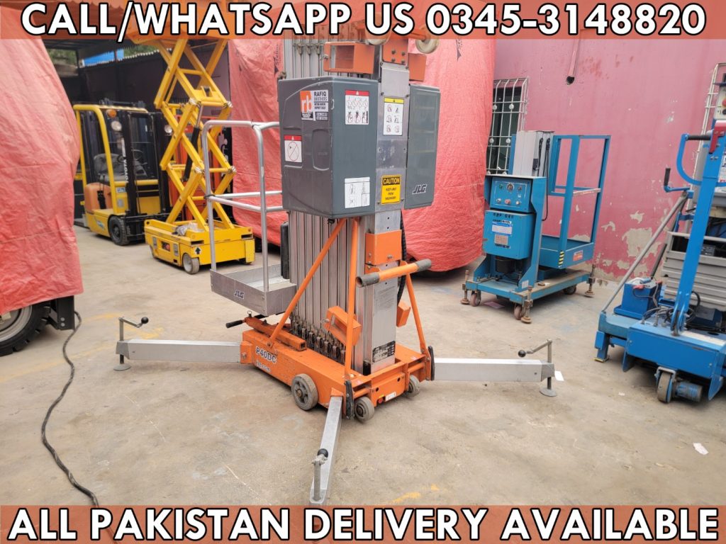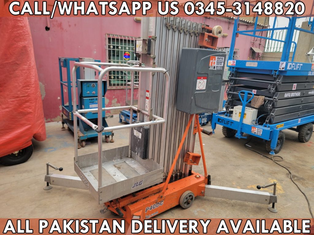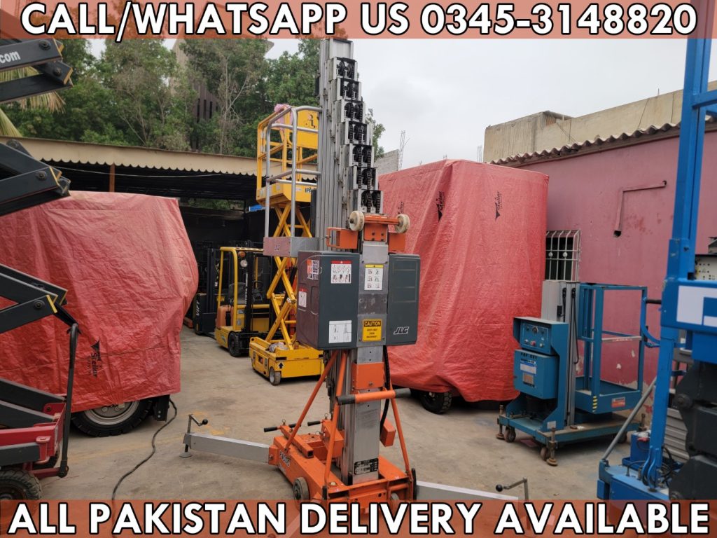 RAFIQ BROTHERS pleased to you offer Used SIVGE GTWY8 battery operated Double Mast Vertical Man Lift for Sale in Karachi Pakistan, details are below.
